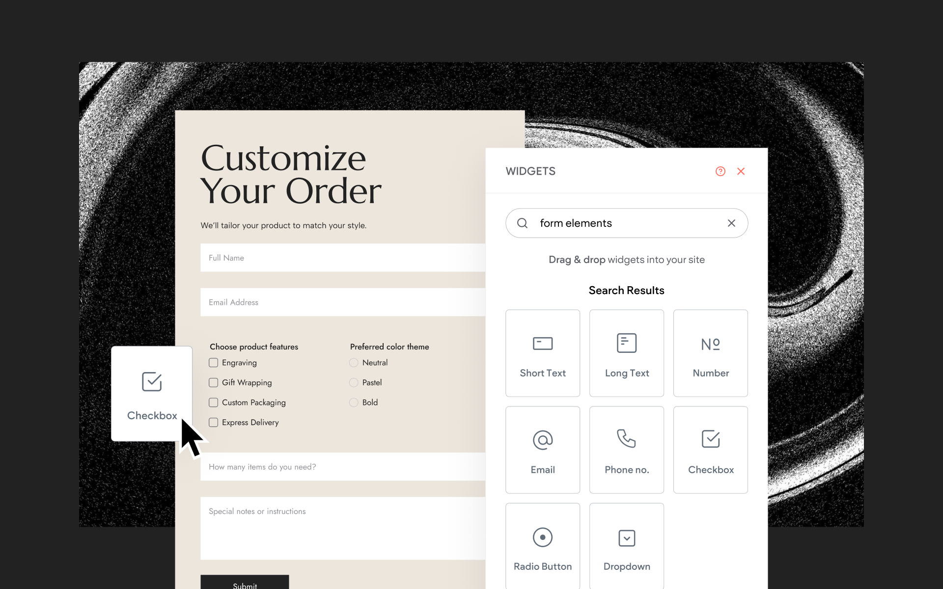 The Advanced Form widget lets you design forms with full layout and spacing control.
